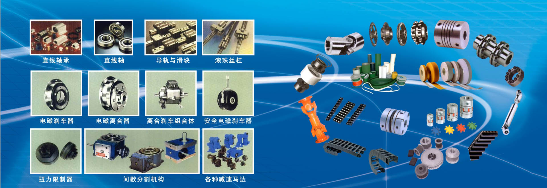 產(chǎn)品有:一、PVC、PU、PE、橡膠等材質(zhì)的輸送皮帶、鋼板助卷帶、尼龍片基帶、印花導(dǎo)帶、瓦楞紙棉織輸送帶、導(dǎo)條輸送帶、各種花紋輸送帶、沖孔輸送帶、裙邊輸送帶、檔板輸送帶、特氟龍耐高溫輸送帶、金屬網(wǎng)輸送帶。二、德國(guó)、美國(guó)、日本、意大利等品牌三角帶、同步帶、高速防油帶、變速帶、廣角帶、多楔帶、圓帶、六角帶、活絡(luò)帶。三、同步帶輪、三角帶輪及錐套。主要有鋁合金和45#鋼等材質(zhì) 四、金屬制國(guó)標(biāo)、非標(biāo)滾子鏈條、鏈輪、鏈板、工程塑料拖鏈、鋼制拖鏈。五、聯(lián)軸器、脹套。